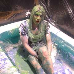 MessyLady_v2 got rubbed down on an inflatable covered with custard by Chuck M
